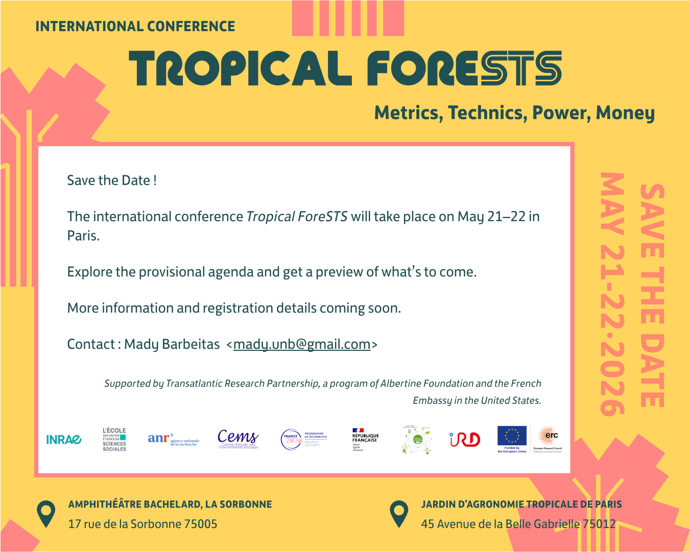 Conférence internationale sur les forêts tropicales et les STS les 21 et 22 mai 2026 à Paris